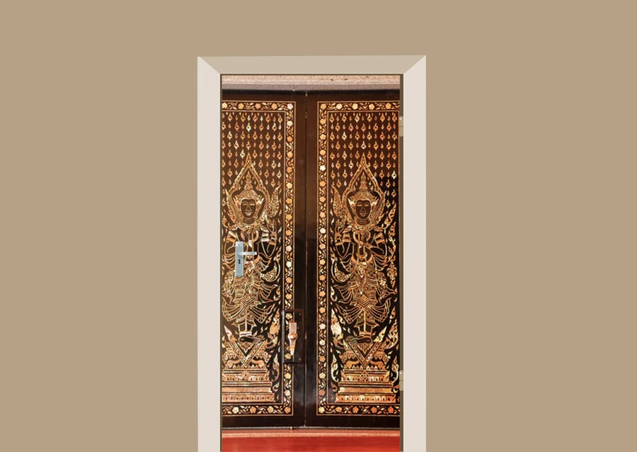 4. Trek nu voorzichtig de rest van het schutvel van de deursticker af en veeg de sticker glad over de deur.