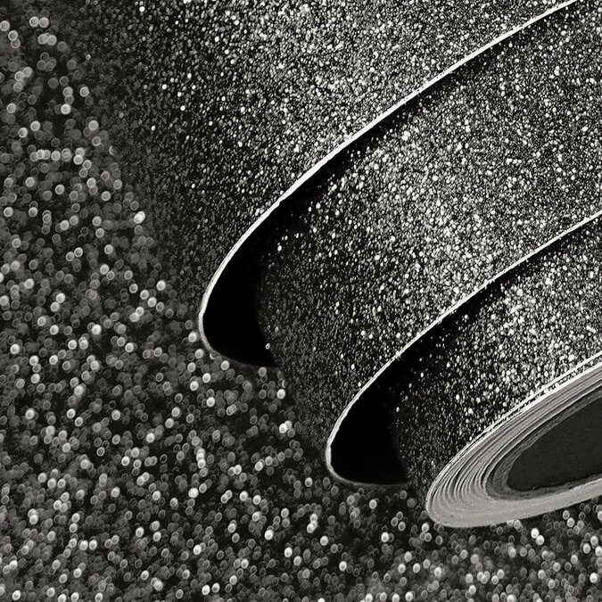 Voor een glitterlook nachtkastje op de kinder slaapkamer, in de etalage van je sieraden winkel of als wanddecoratie in jouw beautysalon hebben wij hoge kwaliteit glitter plakfolie in het zwart. Het glitterfolie plak je binnen op elke vlakke ondergrond. De breedte is 122cm, de lengte kies je zelf! (per staffel van 1 meter)