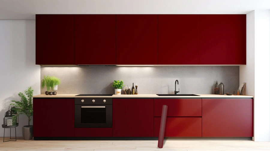 Plakfolie uni bordeaux rood is geschikt voor je keuken, meubels en interieur. De breedte is 45cm, de lengte kies je zelf.