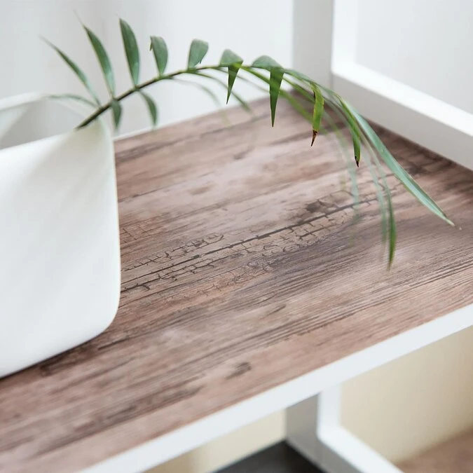 Plakfolie rustiek hout met decoratieve houtstructuur is geschikt voor heel veel doeleinden. Belangrijk voor hechting is dat de ondergrond glad, vetvrij en schoon is. Op onbehandeld hout wil kleeffolie niet altijd hechten. Dit kun je oplossen met behulp van primer. Je ontvangt de folie altijd op rol.