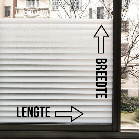 Sfeervol raamfolie met strepen design.Dit raamfolie is ideaal tegen directe inkijk en is tevens een perfecte decoratie! Het raamfolie met plaklaag plakt eenvoudig op gladde en vetvrije ramen en glazen. Het glasfolie schermt af, maar laat wel licht door. De breedte is circa 28 cm, de lengte snijden wij per staffel van 50cm voor je op maat.