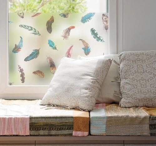 Dit is een premium statische raamfolie van Lineafix met leuke decoratieve print van gekleurde veren. Het folie is premium omdat het een mooie, dikke kwaliteit is. Folie Finja werkt redelijk goed tegen inkijk en is, doordat het statisch is, makkelijk aan te brengen en tevens makkelijk te verwijderen zonder lijmresten achter te laten. Het is bovendien een duurzaam folie want het is herbruikbaar! Wil je dit raamfolie herbruiken? Zorg dan wel dat je het stofvrij opbergt. Heb je Hr++ of Hr+++ glas? Breng dit raamfolie dan alleen aan als jouw raam de hele dag in de schaduw staat.