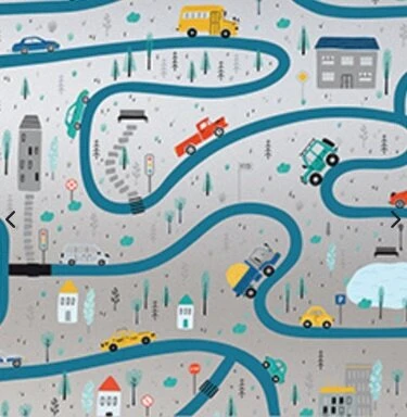 Statische raamfolie voor kinderen met autowegen en auto’s. De breedte is 46cm, de lengte kies je zelf!