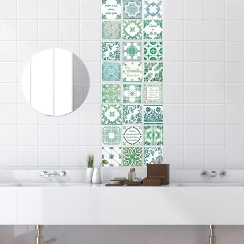 Met tegelstickers voorzie je je wand van net wat extra sfeer. De tegelstickers hebben een vrolijke en frisse uitstraling. Je kunt ze aanbrengen in een horizontale of verticale rij, maar ook in een speels patroontje of gewoonweg de volledige wand van onder tot boven! De stickers staan leuk in een keuken of badkamer, maar ook op bijvoorbeeld de trap of op andere plekken in huis! Wees creatief en maak er iets moois van!