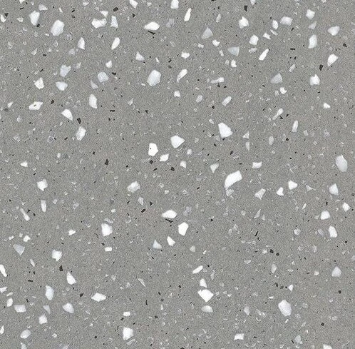 Dit matte Terrazzo folie bestaat uit een donkergrijze ondergrond met daarop kleine grijze en zwarte kiezels en wat grote witte kiezels. De structuur op het folie voelt als een heel klein korreltje. Bestel een proefstaaltje zodat je een exacte indruk krijgt.